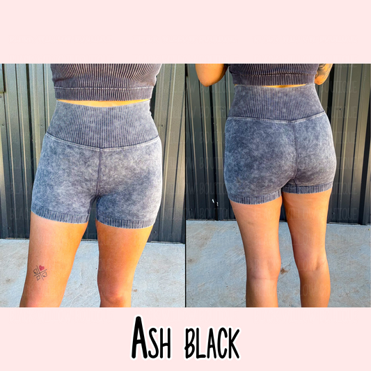 Acid Washed High Waisted Biker Shorts